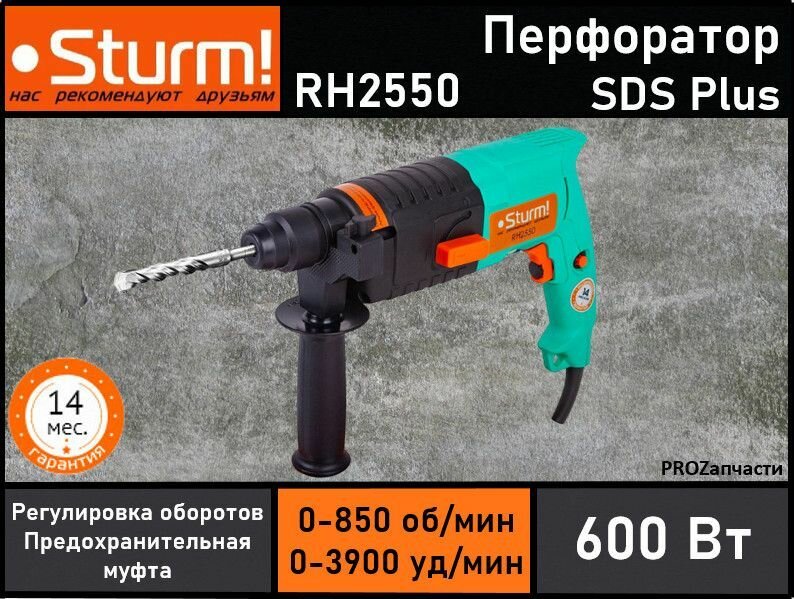 СохранитьRH2550 Перфоратор Sturm, 600 Вт, 2 режима, 0-3900 уд/мин, 0-850 об/мин, рег. оборотов интересное: