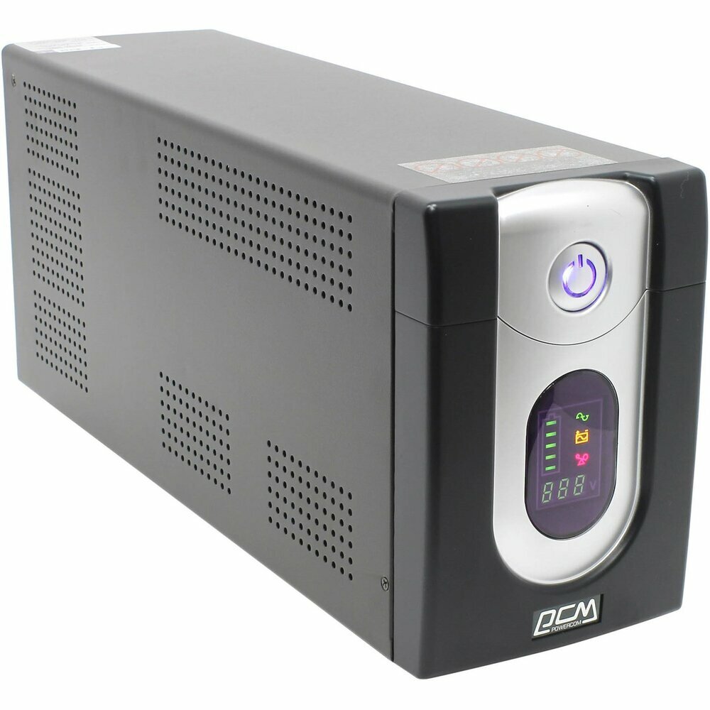 | Плюсы: | Экран с множеством информации и отображением уровня заряда батарей. Есть защита от всплесков напряжения. Есть AVR. Защита от коротких замыканий - чуть что, ибп Powercom тут же отключится и всё. До 1,5 часа работы на батареях. |