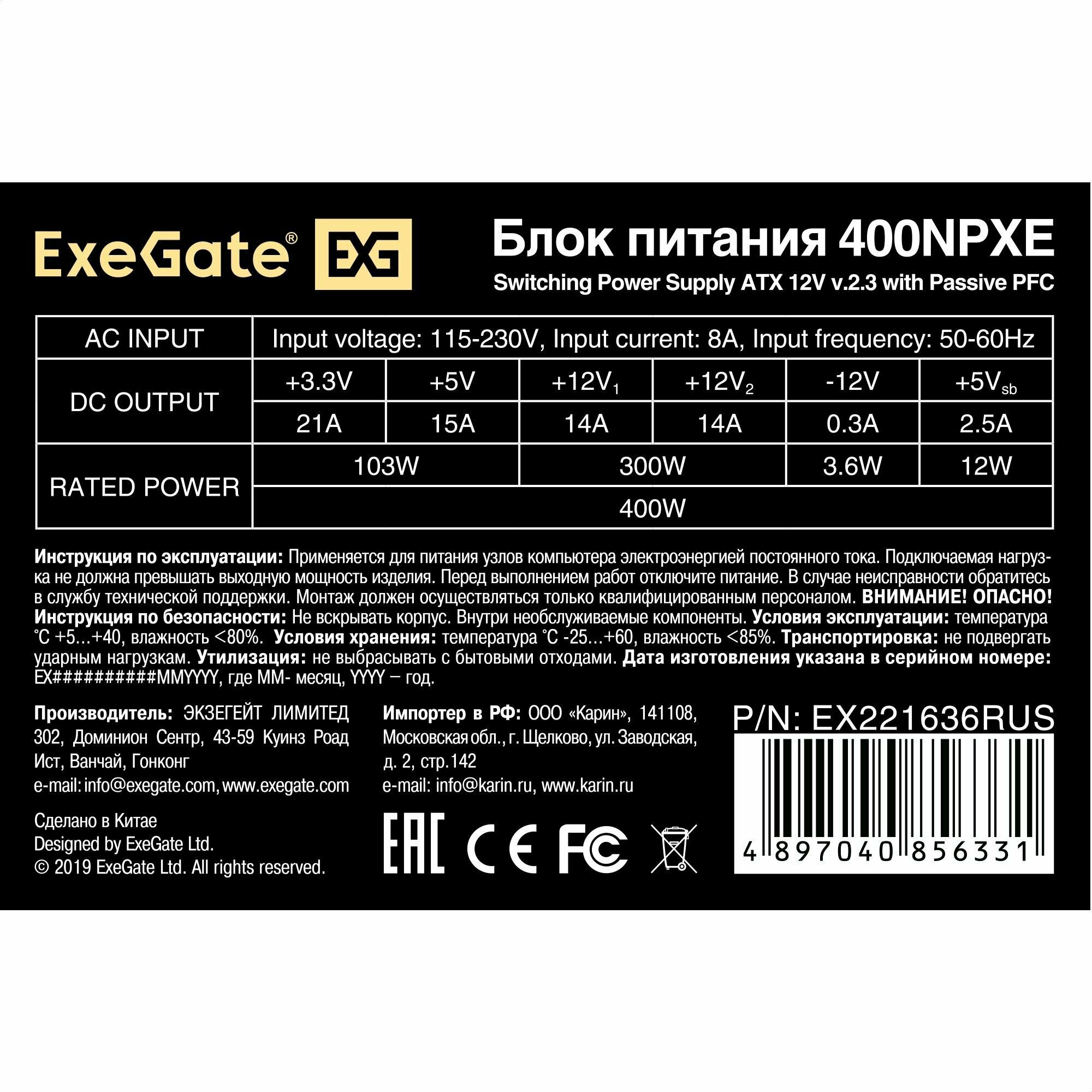 Блок питания Exegate 400NPXE Ex221636rus 400W .