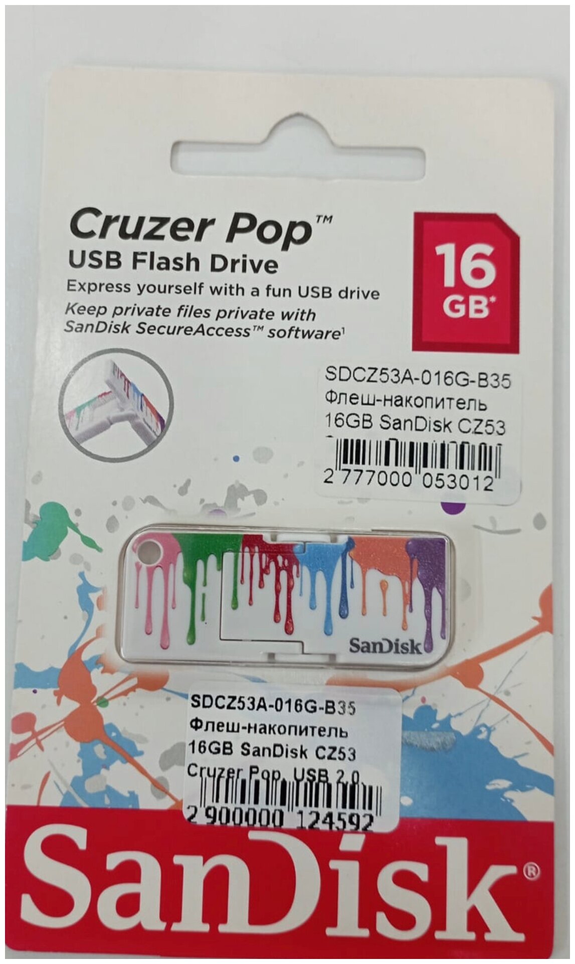 Флеш-накопитель UFD SanDisk CZ53 Cruzer Pop 16GB SDCZ53B-016G-B35 интересное: