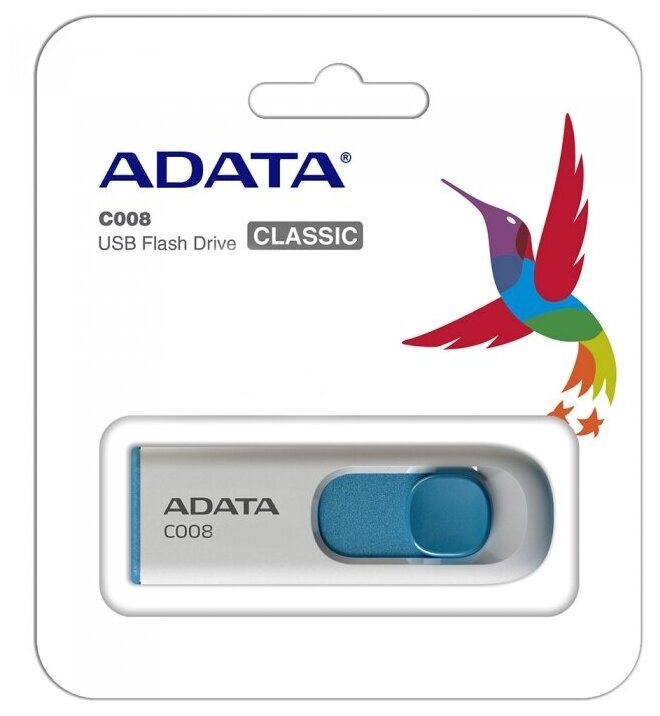ADATA Накопитель USB flash 64ГБ ADATA Classic C008 AC008-64G-RWE, бело-синий (USB2.0)
