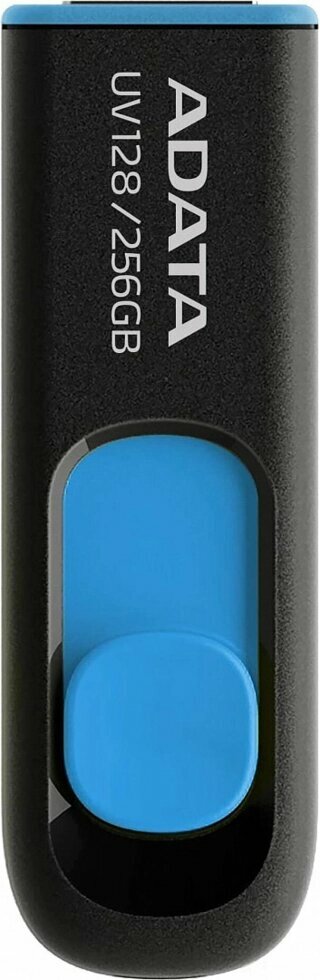 Флешка USB A-Data DashDrive UV128 256ГБ, USB3.0, черный и синий [auv128-256g-rbe]