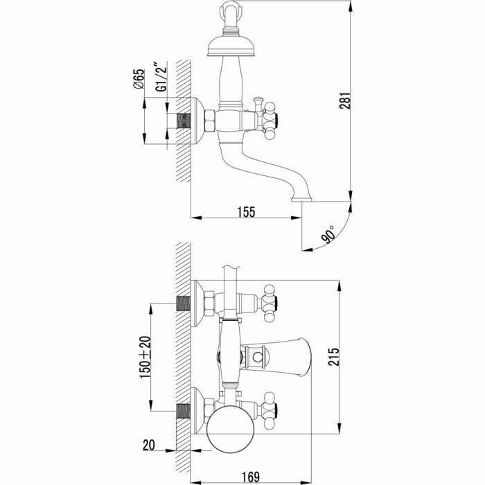 Смеситель для ванны и душа Lemark Vintage Lm2812b для ванны с душем .