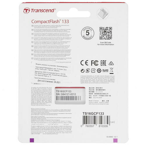 Карта памяти Transcend Карта памяти 16ГБ Transcend TS16GCF133 CompactFlash 133x