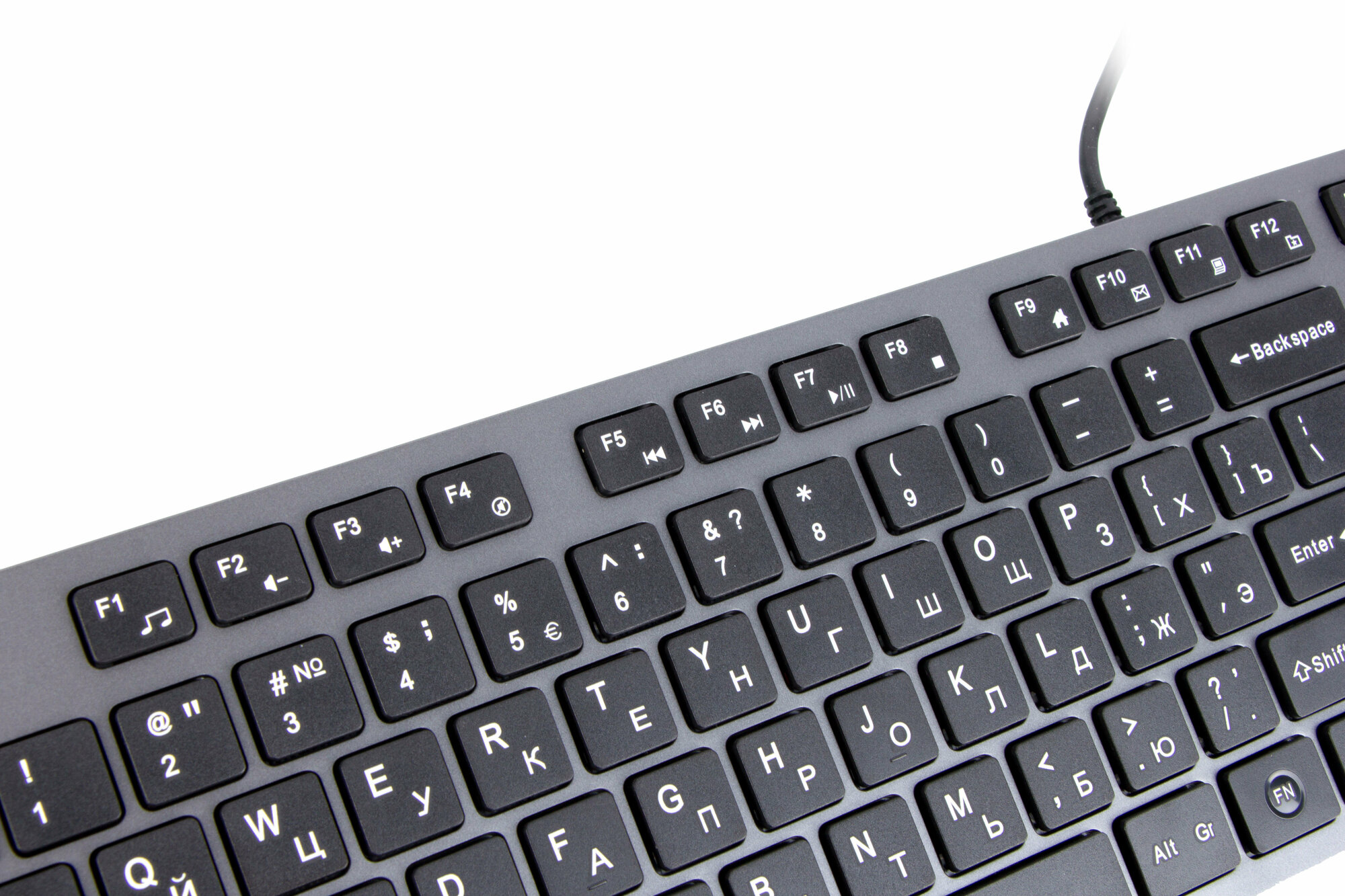 -USB хорошо работает если нужно перекинуть небольшие объемы с флешки, но при подключении юсб-вентилятора, клавиатура начинает подвисать -сломалась через 2 года эксплуатации (перестали работать клавиши 1234 7890), почему 56 были исправны осталось для меня загадкой, даже после разбора клавиатуры -русские и английские буквы одного цвета |