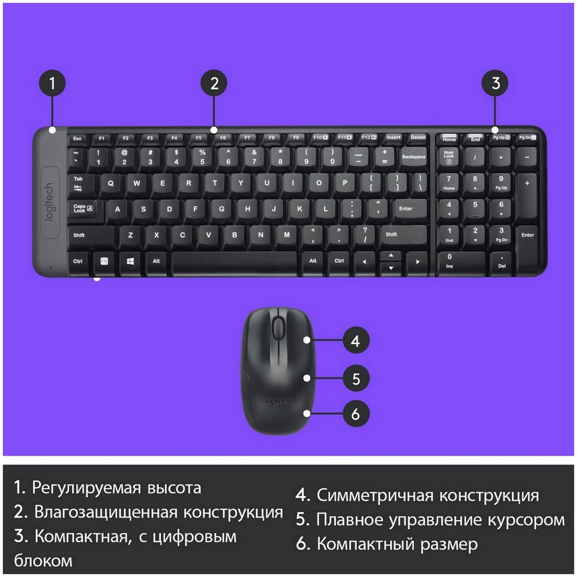 Комплект клавиатура + мышь Logitech Wireless Combo MK220, черный, кириллица+QWERTY