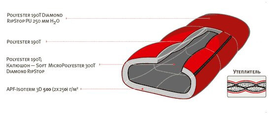 | Плюсы: | Отличное качество материалов, подходит для ночевок в минус |