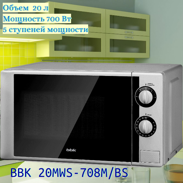 Микроволновая печь BBK 20MWS-708M/BS, 700Вт, 20л, серебристый /черный