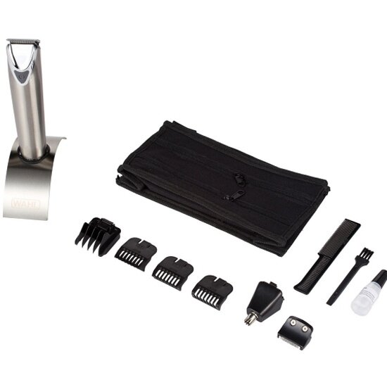 | Отзыв: | Я свою брал из США с доставкой по почте. В комплекте основной металлический триммер шириной 35 мм, узкий триммер шириной 6 мм, мини-бритвенная насадка шириной 20 мм, насадка для стрижки волос в различных отверстиях, плюс 12 пластиковых насадок от 3 до 25 мм, масло, щеточка для чистки, расческа и сумочка с вышитым логотипом "Wahl", зарядка. Подставка отсутствует. В целом впечатления крайне приятные, чувствуется добротная и дорогая вещь в руках. Шум при различных насадках разный, не раздражает. В инструкции подробно все написано, как и что брить и стричь. Рекомендую к покупке. |