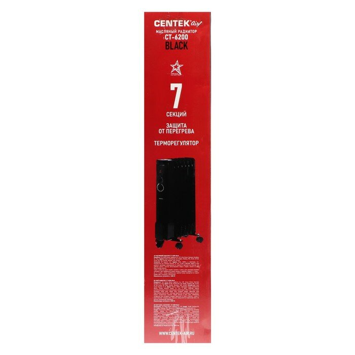 Обогреватель электрический масляный CENTEK CT-6200 Black: черный, 7 секций, 15м2, 1500Вт, 3 режима, защита от перегрева, LED-индикатор