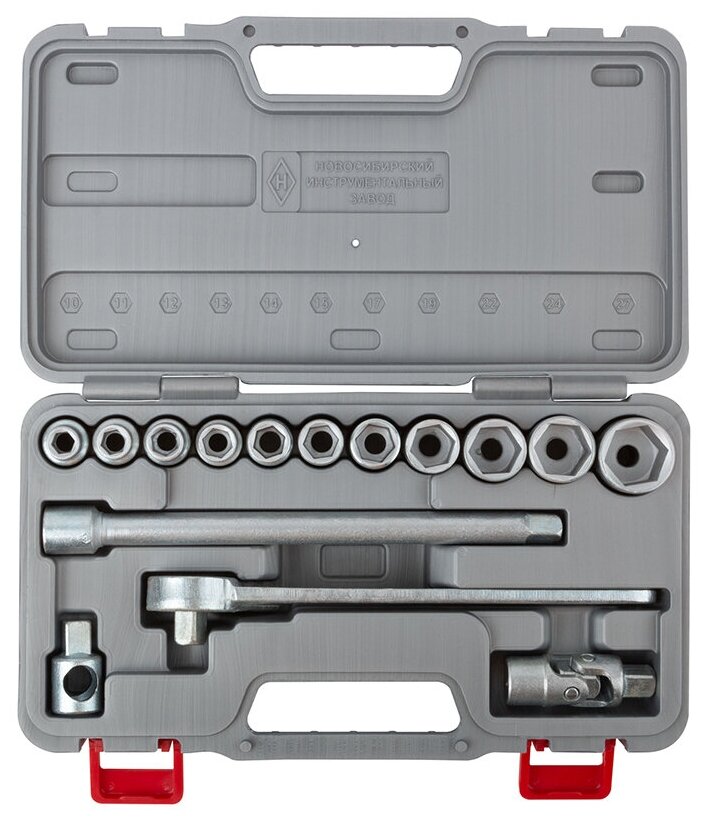 Торцовые головки НИЗ набор Шоферский инструмент №2Д, сталь 40Х, 1/2, в пластиковом кейсе, 15 пред (1шт) (2761-20_z01)