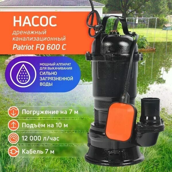 Насос PATRIOT FQ600С дренажный грязн.вода 600Вт, 4500л/ч корпус чугун, вес 15 кг.
