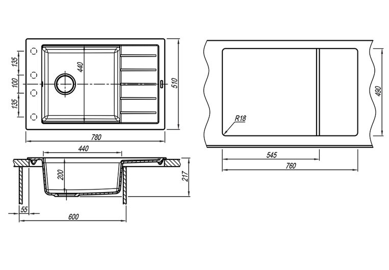 Очень просторная и глубокая, удобное крыло. Имеются 4 подпиленных отверстия, нужные надо выбить. У меня не получилось, думала, разобью все к чертям) Мужа просила. Одно для смесителя пробили и одно для жидкого мыла. В комплекте есть металлическая решетка — выглядит красиво, но я ей пользуюсь редко (зелень сушиться положить разве что), а так убираю, чтоб не мешала. Очень понравилось качество выноса мойки/сифона, который шел в комплекте. Даже есть ответвление для стиральной машины, на случай, если кому-то нужно. Моется легко, несмотря на то, что светлая. Пишут, что порошком нельзя, но я иногда протираю пемо-люксом, и ничего! От свеклы и ягод не окрашивается (но я стараюсь сразу протирать). Кипяток лью — дно не вывалилось. |