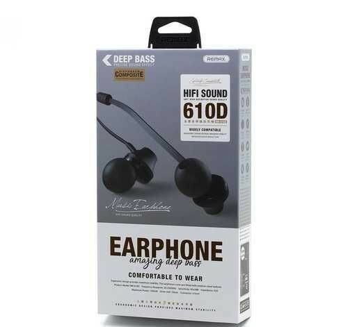 Гарнитура REMAX RM-610D 3.5мм, внутриканальная, громкость +/-, 1.2м (черный)
