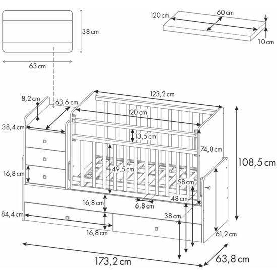 | Минусы: | -в комоде с одной стороны отсутствовало нужное отверстие, из-за этого смогли прикрепить его к кроватке лишь с одной с тороны. |