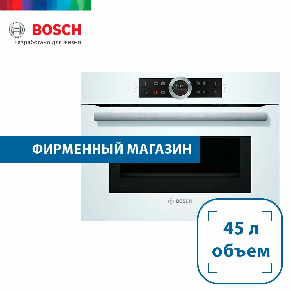 Компактный электрический духовой шкаф с СВЧ Bosch CMG633BW1, белый