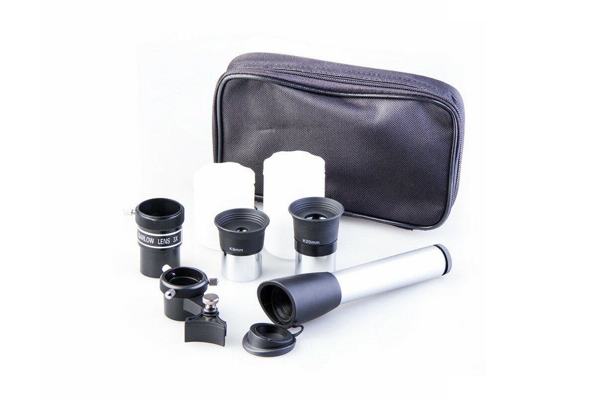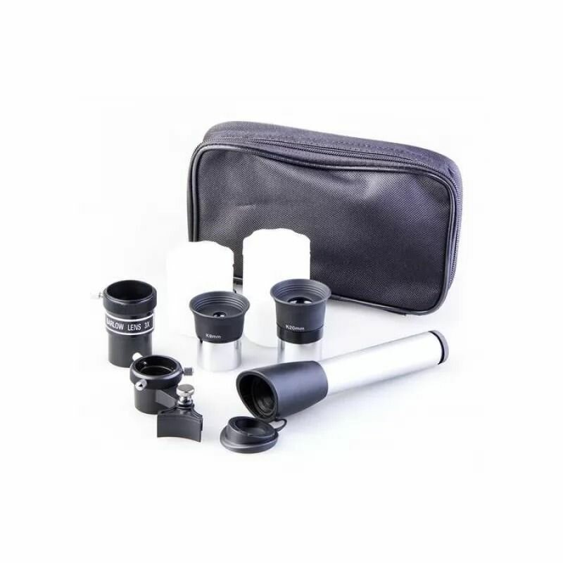 | Комплектация | окуляр 9 мм, 38.8х; окуляр 20 мм, 17.5х; диагональная призма Шмидта; линза Барлоу 3х |