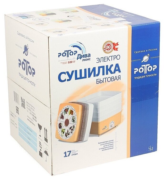 сушилка для овощей и фруктов Ротор Дива Люкс с 5 решетами в гофротаре (квадратная)(СШ 010-02) интересное:
