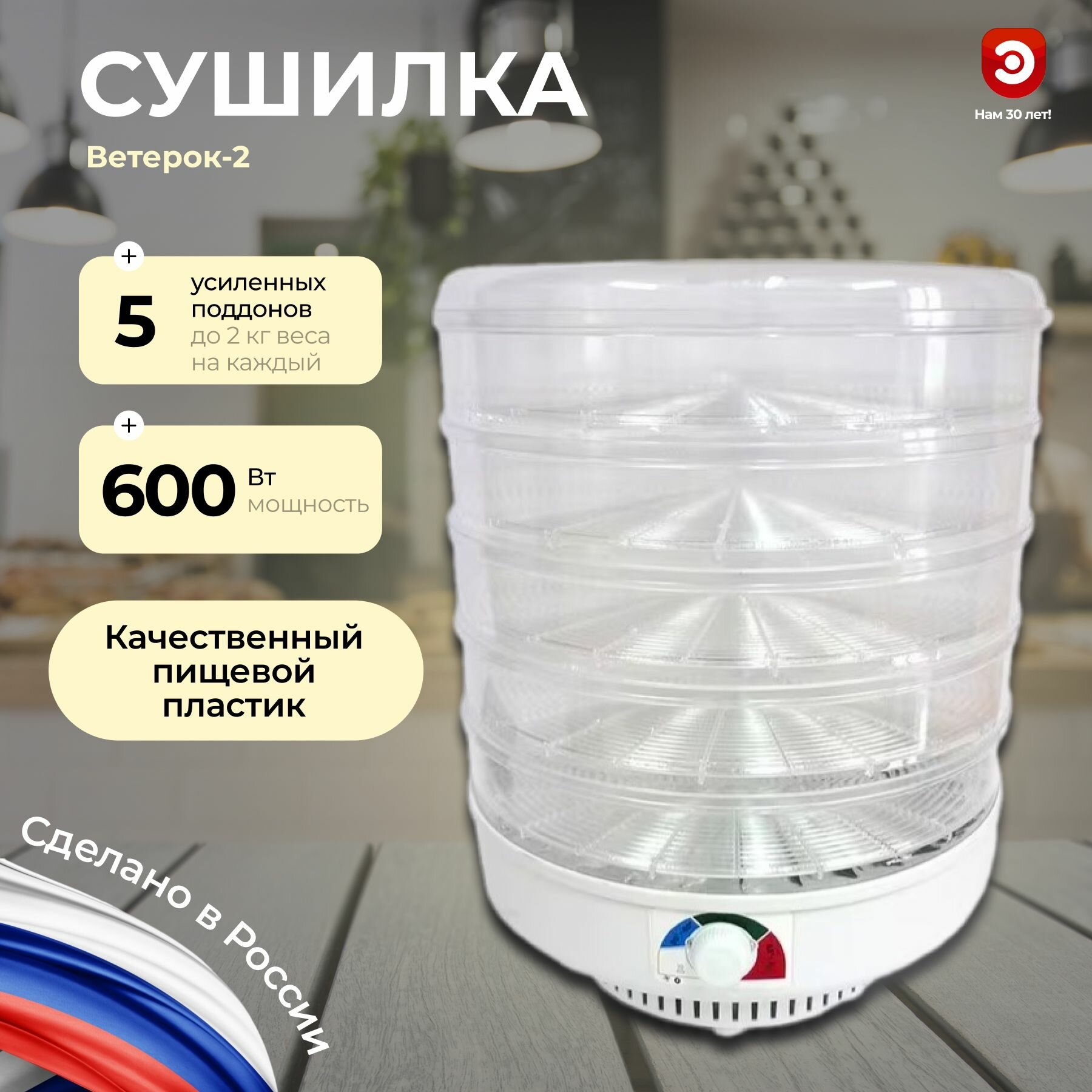 Сушилка для овощей и фруктов Ветерок-2У 600Вт, 6 поддонов, гофротара .