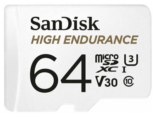 Карта памяти SanDisk MicroSDXC 64 ГБ High Endurance Video Monitoring Card UHS-I U3 V30 (100 Mb/s) Class 10 + SD адаптер
