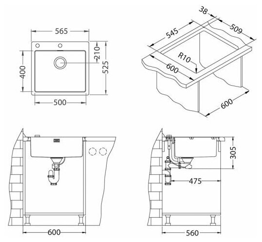 Мойка PURE 60R KMB-90 980X525 правая в комплекте с сифоном 1127259,