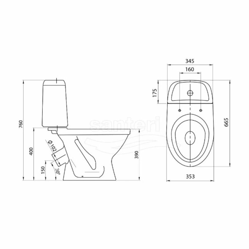Унитаз с бачком напольный Santeri Прайм Стандарт с косым выпуском