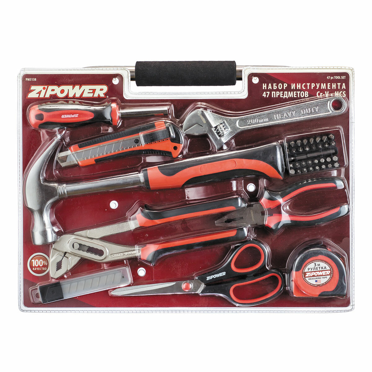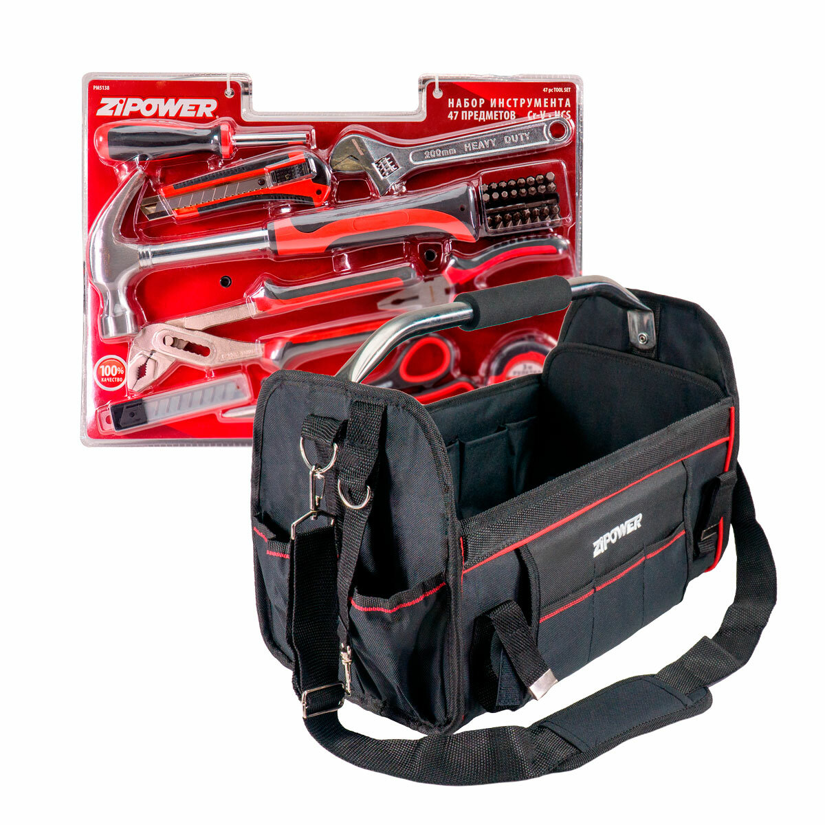 Набор инструментов бытовой Zipower PM5138, 47 предметов в сумке, Cr-V сталь