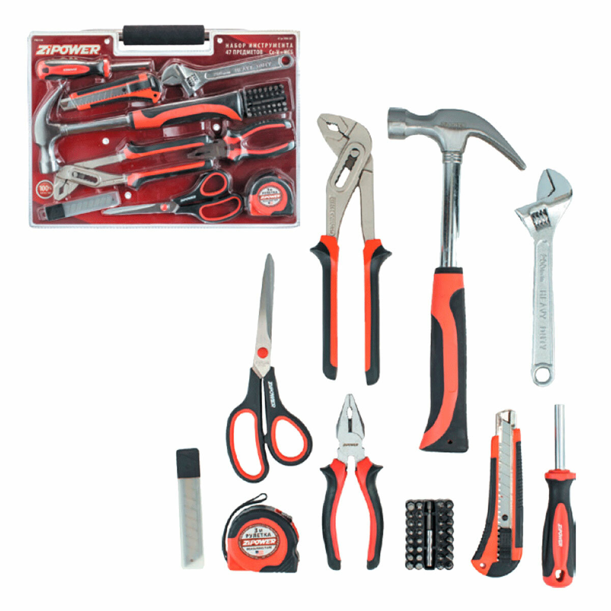 ZIPOWER PM5138 Набор инструмента бытовой, 47 предметов (в сумке), Cr-V сталь