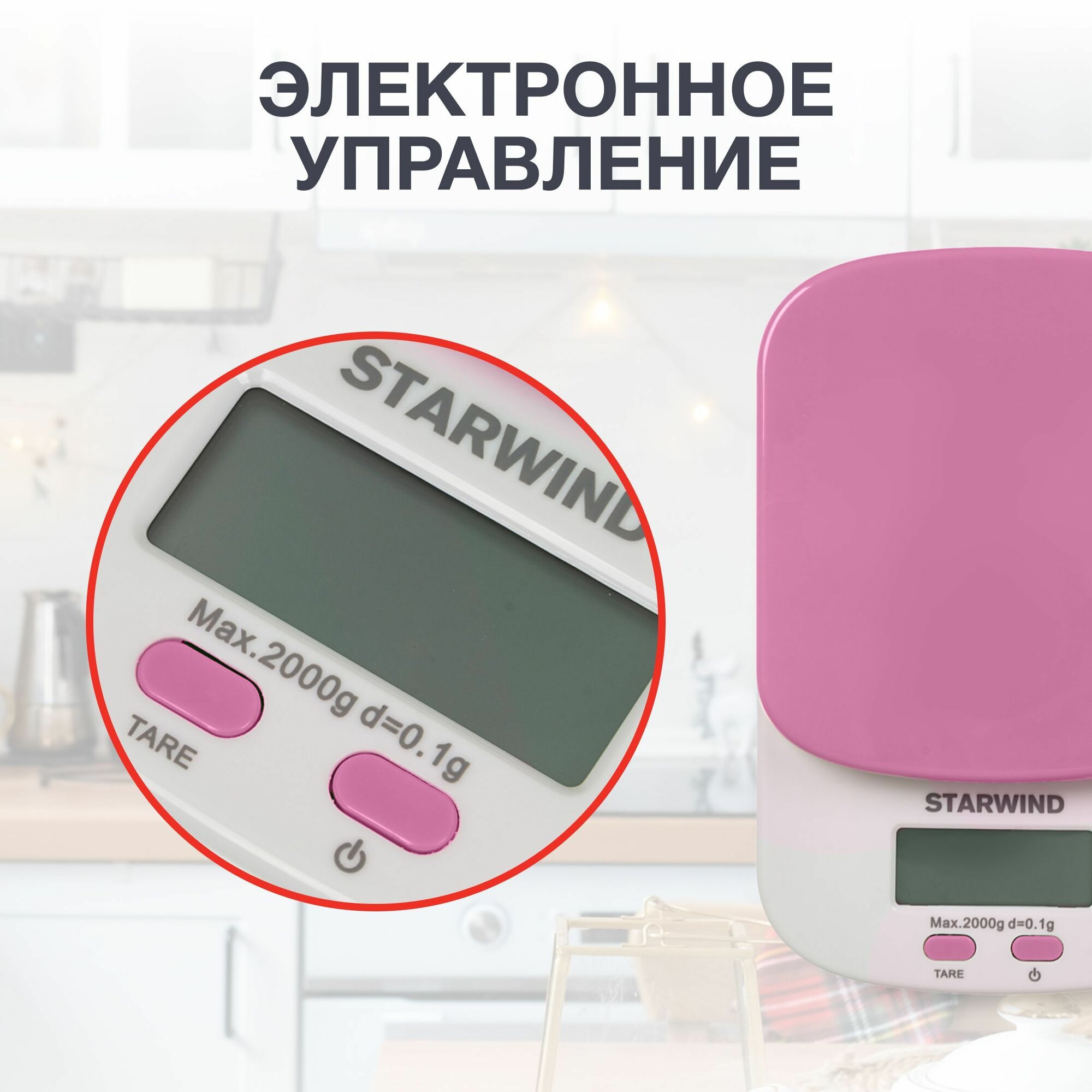 Весы кухонные электронные SSK2157 макс.вес:2кг роз. | код 363712 | STARWIND (1 шт.)