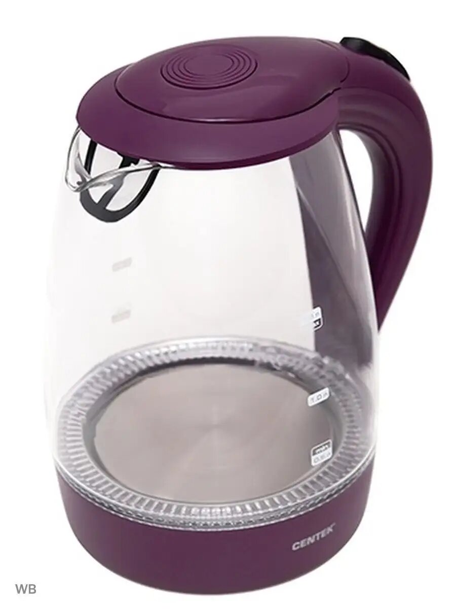 Чайник Centek CT-0042 Violet стекло, 1.8л, 2200Вт, внутренняя LED подсветка, кнопка