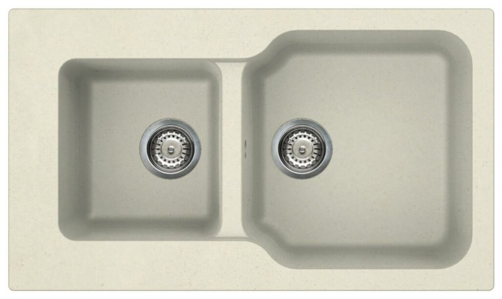 Кухонная мойка двухчашевая OMOIKIRI Maru 86-2-SA, искусственный гранит/бежевый/основная чаша справа