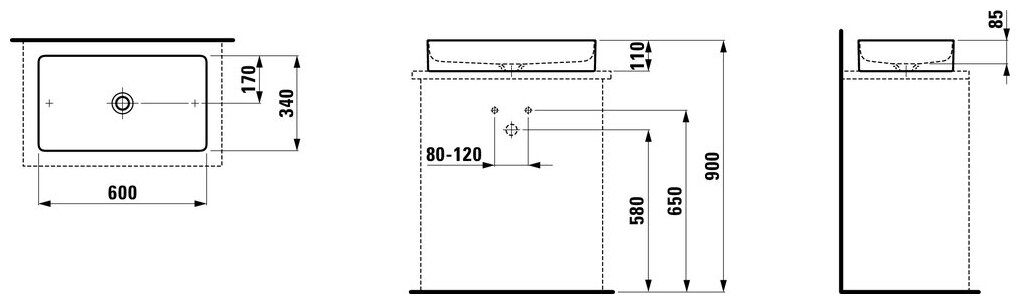 Накладная раковина Laufen Living SaphirKeramik 60х34х11см, арт. 8.1143.4.000.112.1, SaphirKeramik, без отверстия перелива, без отверстия для смесителя