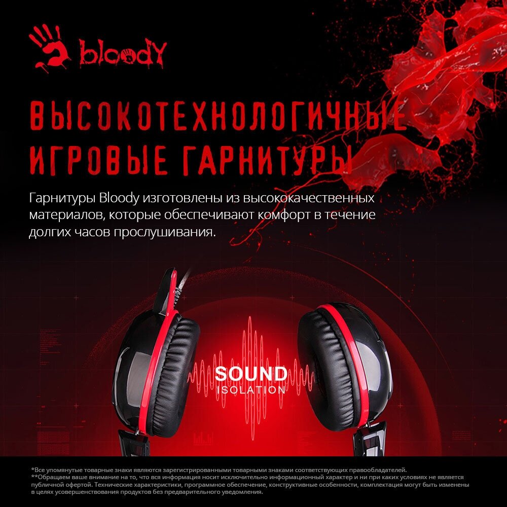 A-4Tech A4 Bloody G300 черный красные 2.2м мониторы оголовье G300