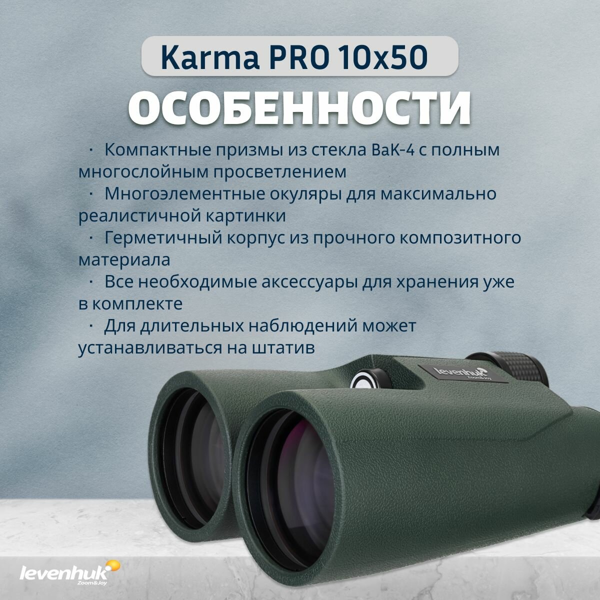 Бинокль Levenhuk Karma PRO 10x50 интересное: