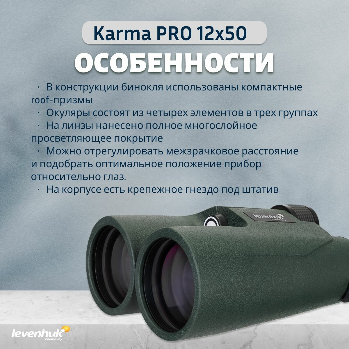 Бинокль Levenhuk Karma PRO 12x50 интересное: