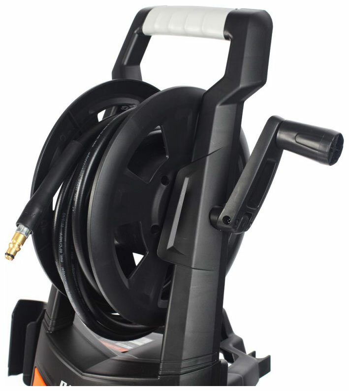 | Минусы: | Катушка на рукоятке корпуса самого аппарата полная хрень. Своих функций не выполняет, т. к. ни как не фиксируется, и шланг ВД на нем висит как макаронина. И место занимает. Крепеж для пистолета постоянно слетает, а сам пистолет упирается в поверхность, на которой стоит. |