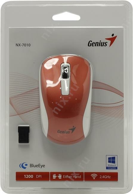 Купить Мышь Genius беспроводная NX-7010 (белый+красный металлик, BlueEye 1200dpi)