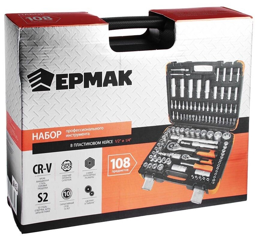 Набор профессионального инструмента ермак, 108 предм., 1/4"+1/2"