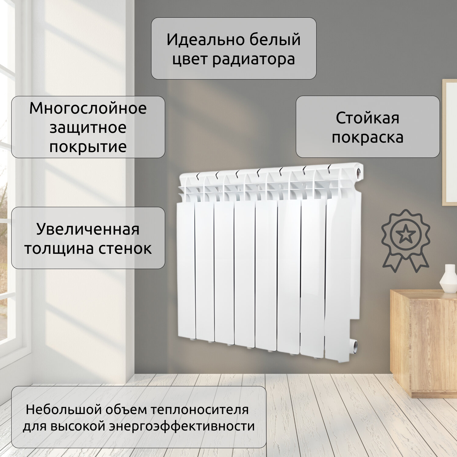 Радиатор секционный STI AL 500, кол-во секций: 6, 11.52 м2, 1152 Вт, 480 мм.