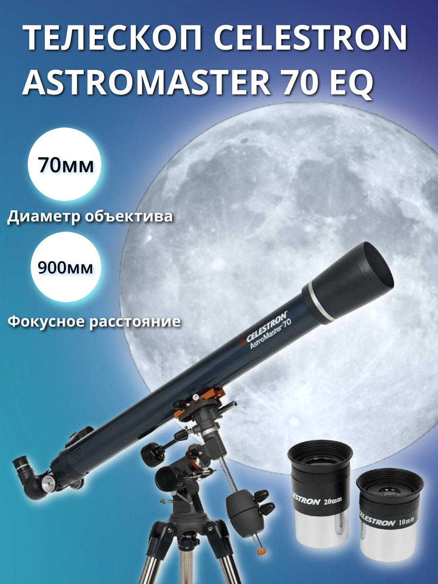Телескоп Celestron AstroMaster 70EQ (21062)(70мм рефрактор-ахромат, 900 мм, 1:12.9, 2 окуляра, Star
