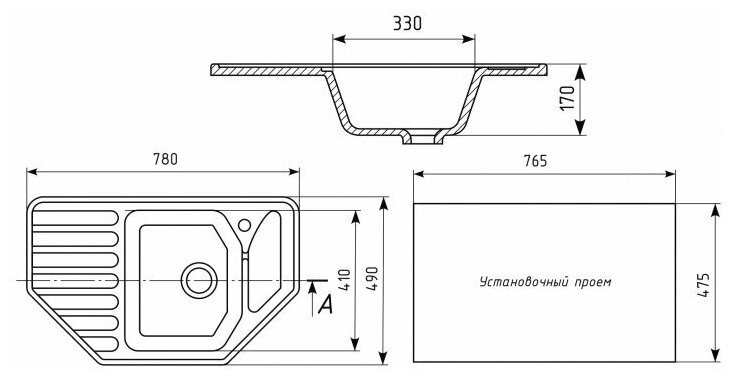 Мойка MIXLINE ML-GM24 угловая с крылом антрацит (343) 790*490*200мм NEW (552059)