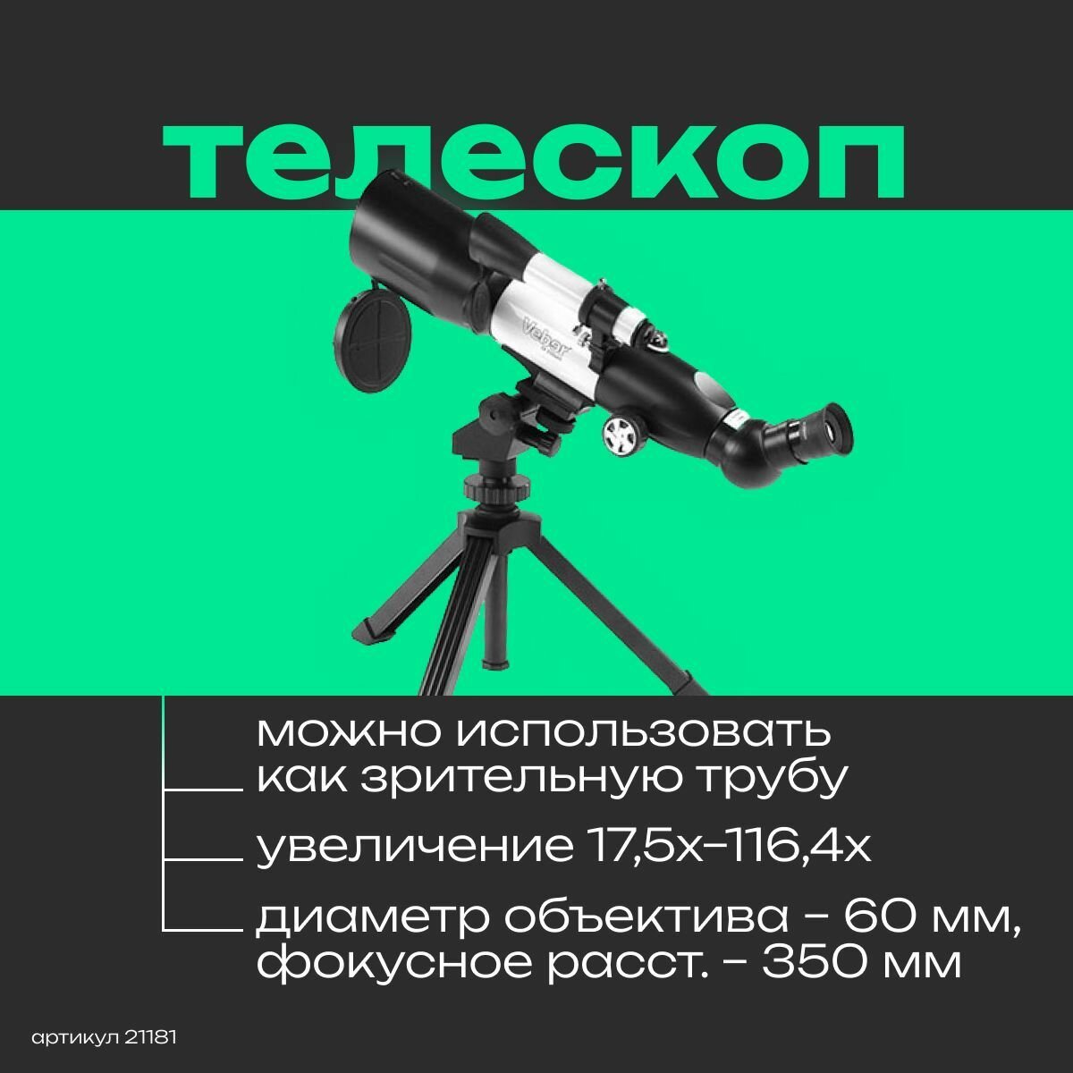 Телескоп Veber 350x60 Аз рефрактор 21181