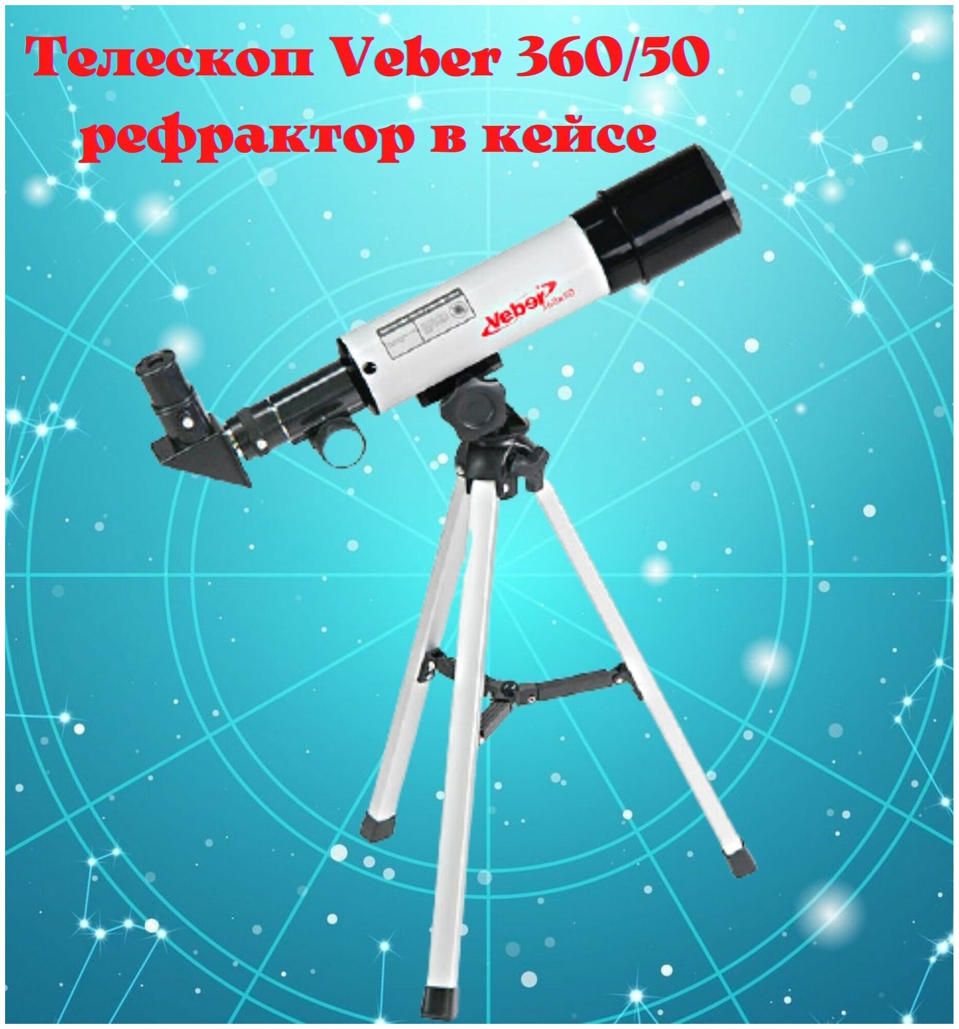 Телескоп Veber 360/50 рефрактор в кейсе ; Подарок школьнику ; Юному астроному