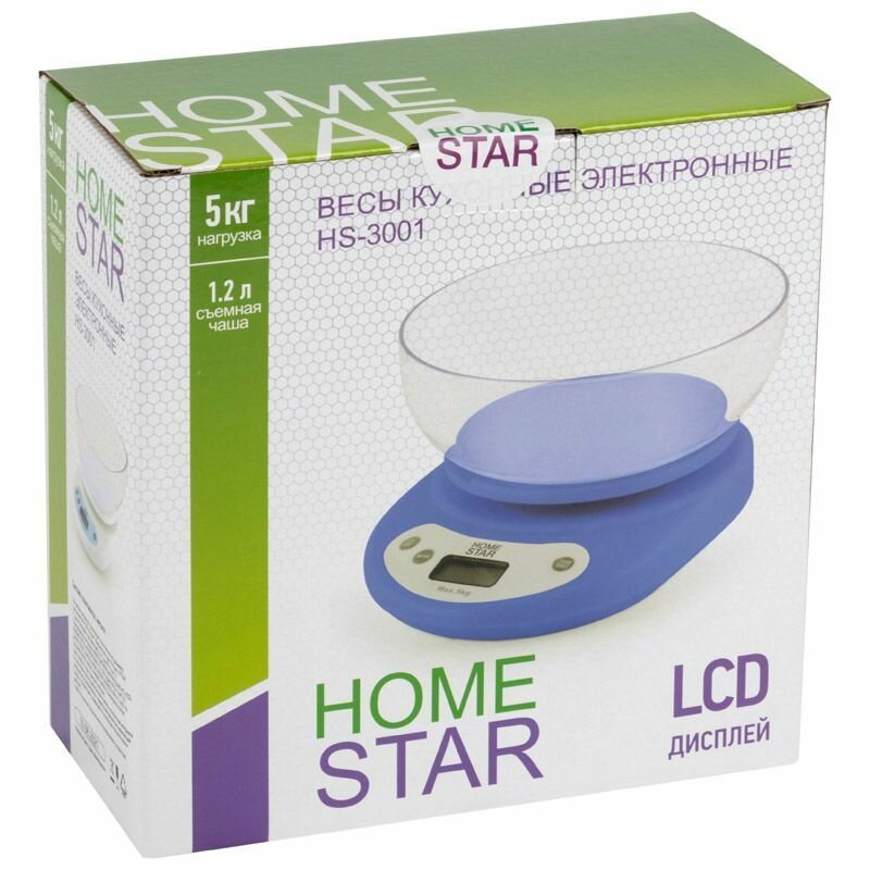 HomeStar Весы кухонные HOMESTAR HS-3001, электронные, до 5 кг, автоотключение, голубые
