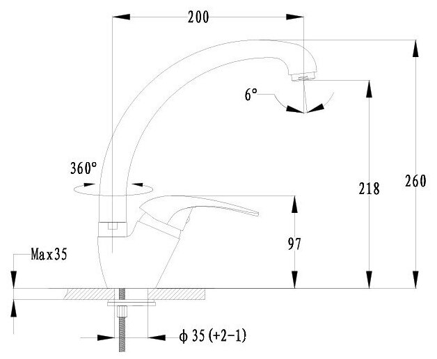 GRANFEST Смеситель для кухни боковой D-35мм топаз арт.