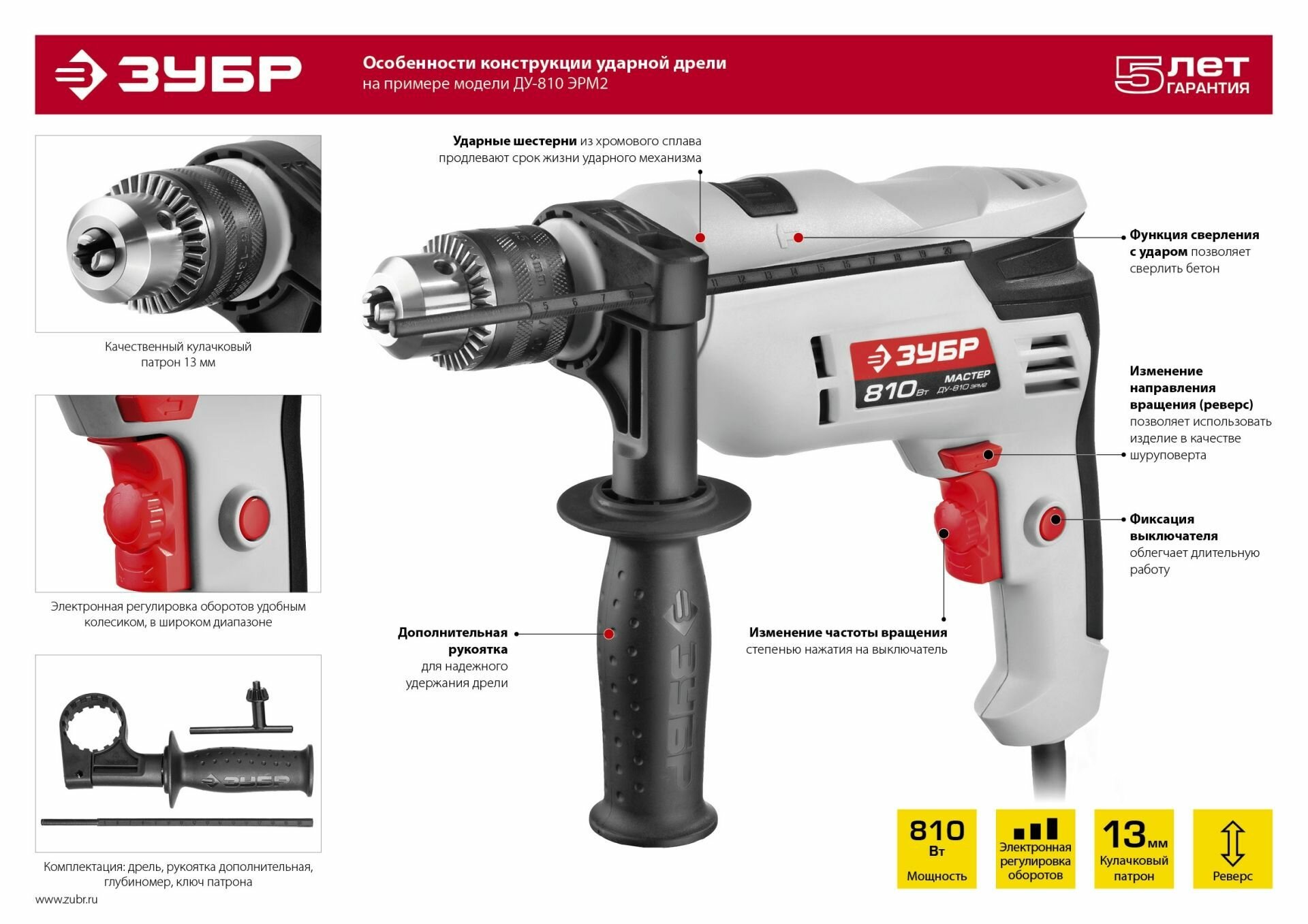 Дрель ударная Зубр ДУ-810 ЭРМ2, 810 Вт