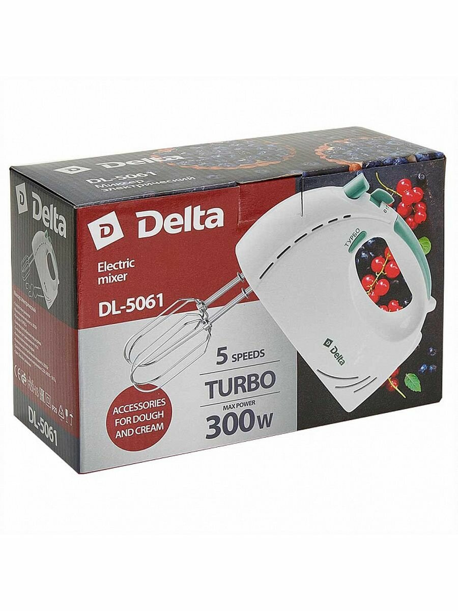 Миксер 300ВТ 5 Ск.режимов Турбо Бел/сир Delta DL-5061 Б/сир