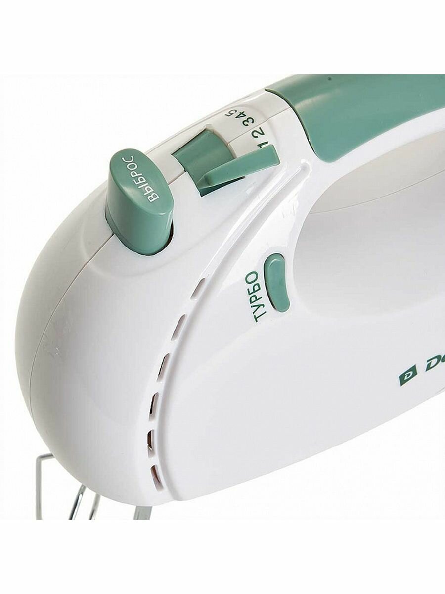 Миксер DELTA DL-5061 белый с зеленым: 300ВТ, 5 скорост, режим "турбо"
