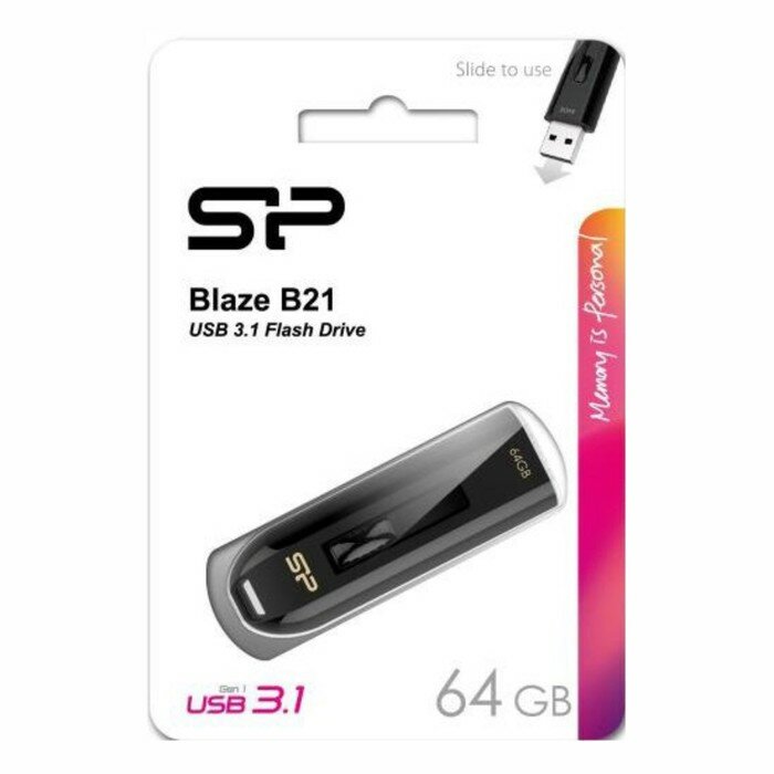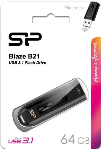 Флешка 64Gb Silicon Power Blaze B21, USB 3.1, Черный SP064GBUF3B21V1K