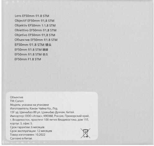 Объектив Canon EF 50mm f/1.8 STM (